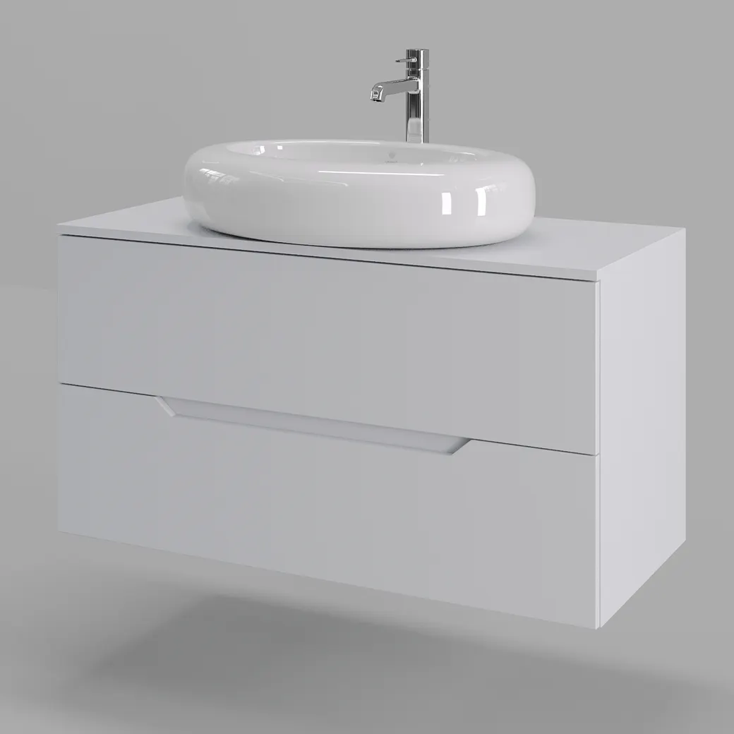 Тумба подвесная с накладной раковиной Orange Line отличается современным дизайном. Изготовлена из МДФ высокой плотности. Мебель покрыта пленкой ПВХ с технологией Soft Touch — ламинация класса премиум, с повышенными тактильными свойствами. Пленка обеспечивает дополнительную защиту мебели от влаги и перепадов температуры. На ящики установлены комплекты скрытых направляющих Hettich, обеспечивающие полное выдвижение и имеющие встроенную систему плавного и бесшумного закрывания. Исполнение - матовое. Материал раковины - фарфор. Отверстия в столешнице под раковину и смеситель монтируются самостоятельно.