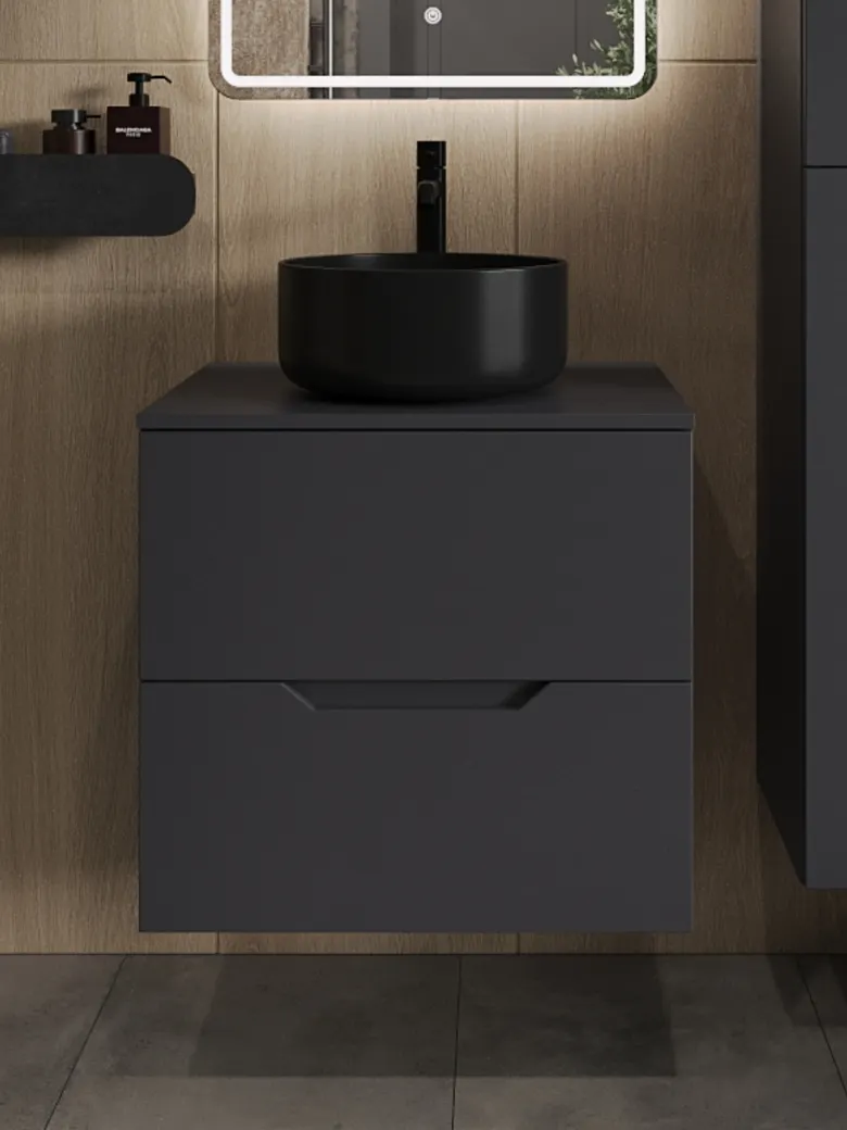 Orange Line тумба с раковиной подвесная 60 см, графит/черный арт-Li-60TugMDF+B07-345B