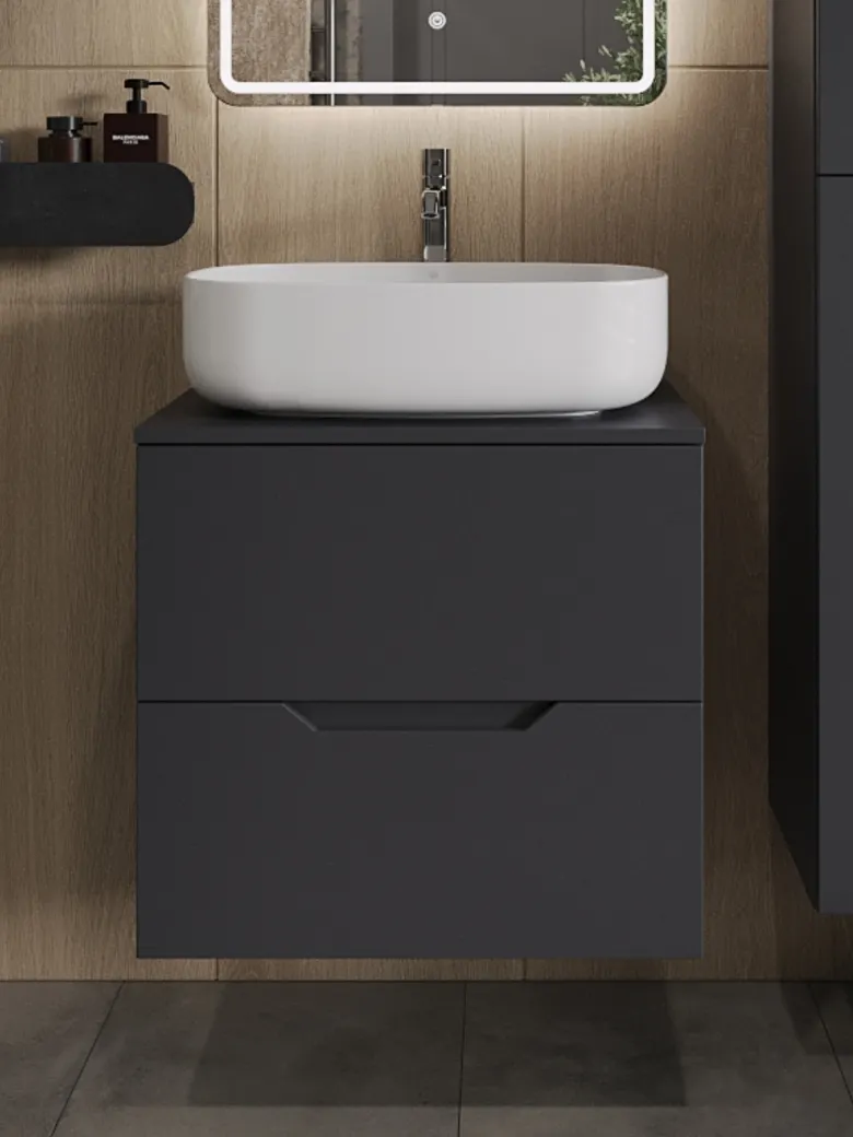 Orange Line тумба с раковиной подвесная 60 см, графит/белый арт-Li-60TugMDF+B07-540W