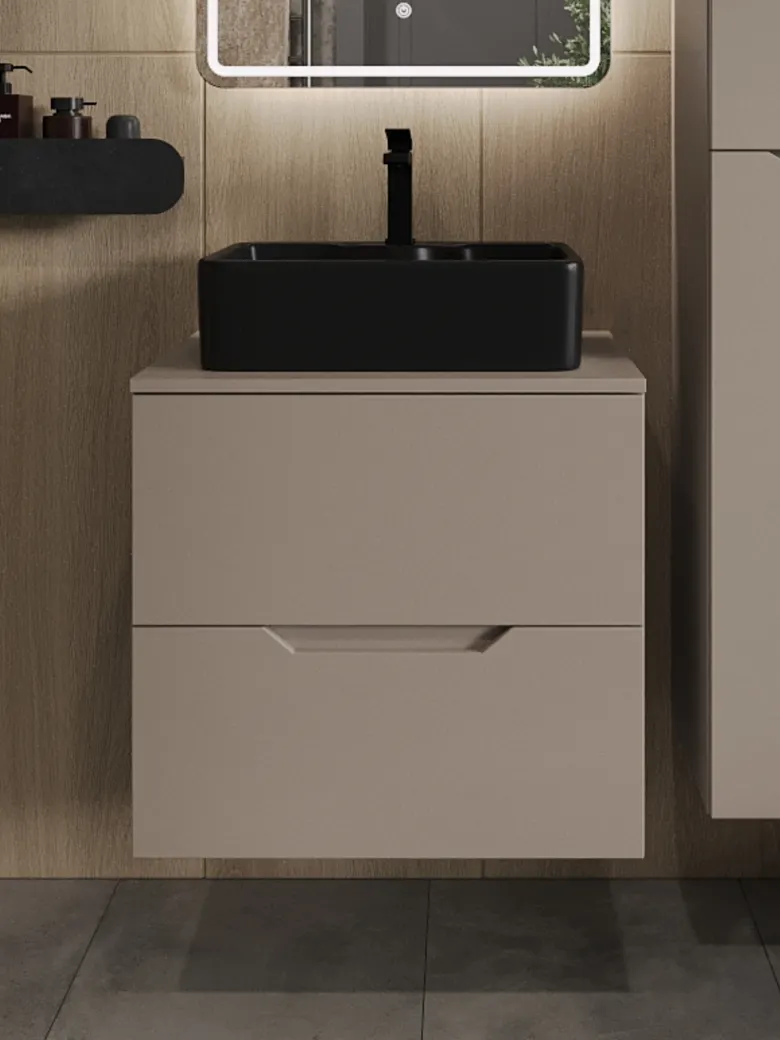 Orange Line тумба с раковиной подвесная 60 см, латте/черный арт-Li-60TuLMDF+B01-475MB