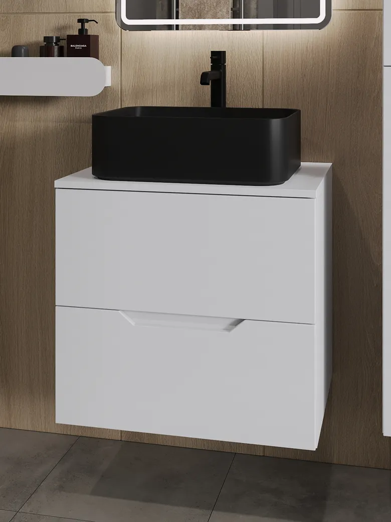 Orange Line тумба с раковиной подвесная 60 см, белый/черный арт-Li-60TuwMDF+B02-460MB