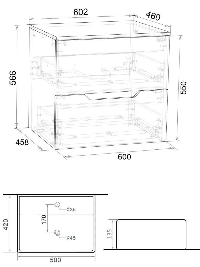Orange Line Li-60TuwMDF+B04-500W тумба с раковиной подвесная 60 см, белый Li-60TuwMDF+B04-500W