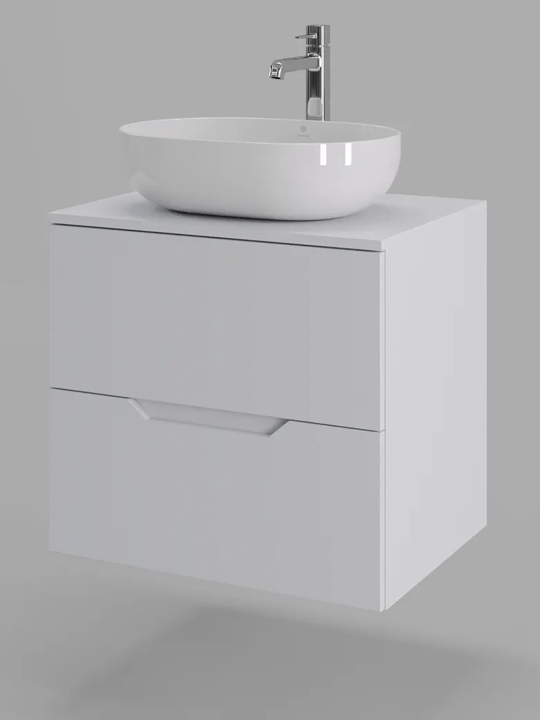 Тумба подвесная с накладной раковиной Orange Line отличается современным дизайном. Изготовлена из МДФ высокой плотности. Мебель покрыта пленкой ПВХ с технологией Soft Touch — ламинация класса премиум, с повышенными тактильными свойствами. Пленка обеспечивает дополнительную защиту мебели от влаги и перепадов температуры. На ящики установлены комплекты скрытых направляющих Hettich, обеспечивающие полное выдвижение и имеющие встроенную систему плавного и бесшумного закрывания. Исполнение - матовое. Материал раковины - фарфор. Отверстия в столешнице под раковину и смеситель монтируются самостоятельно.