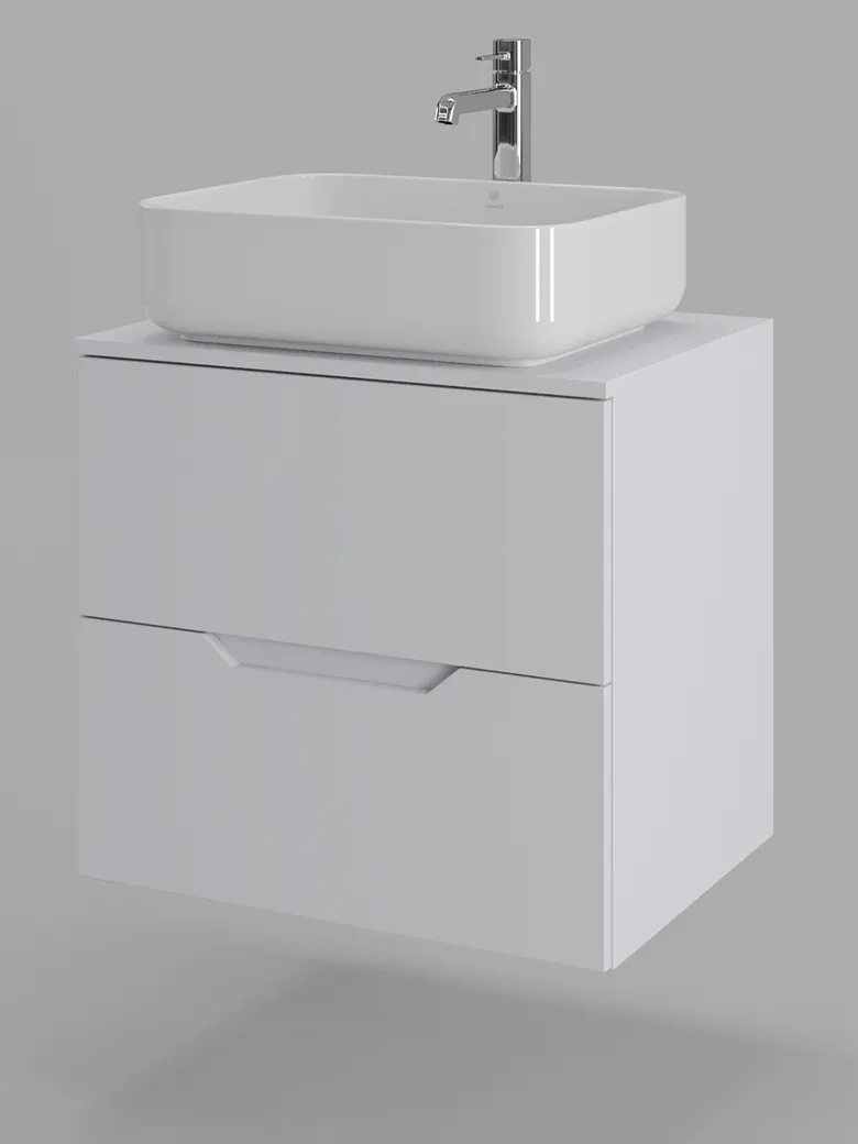 Тумба подвесная с накладной раковиной Orange Line отличается современным дизайном. Изготовлена из МДФ высокой плотности. Мебель покрыта пленкой ПВХ с технологией Soft Touch — ламинация класса премиум, с повышенными тактильными свойствами. Пленка обеспечивает дополнительную защиту мебели от влаги и перепадов температуры. На ящики установлены комплекты скрытых направляющих Hettich, обеспечивающие полное выдвижение и имеющие встроенную систему плавного и бесшумного закрывания. Исполнение - матовое. Материал раковины - фарфор. Отверстия в столешнице под раковину и смеситель монтируются самостоятельно.