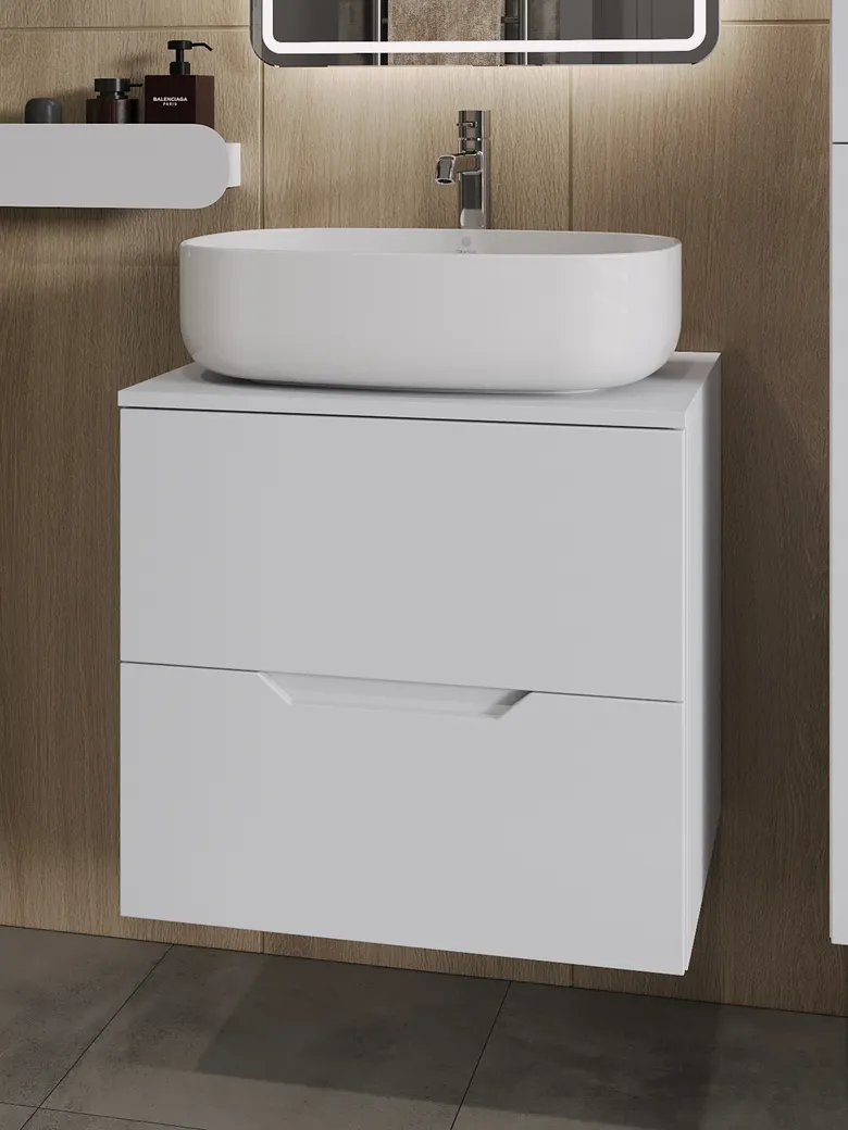Тумба подвесная с накладной раковиной Orange Line отличается современным дизайном. Изготовлена из МДФ высокой плотности. Мебель покрыта пленкой ПВХ с технологией Soft Touch — ламинация класса премиум, с повышенными тактильными свойствами. Пленка обеспечивает дополнительную защиту мебели от влаги и перепадов температуры. На ящики установлены комплекты скрытых направляющих Hettich, обеспечивающие полное выдвижение и имеющие встроенную систему плавного и бесшумного закрывания. Исполнение - матовое. Материал раковины - фарфор. Отверстия в столешнице под раковину и смеситель монтируются самостоятельно.