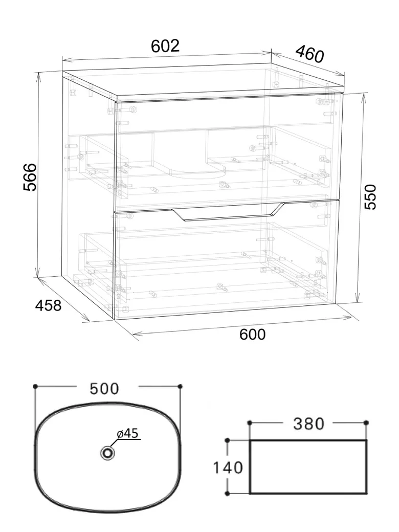 Orange Line Li-60TuwMDF+B08-500W тумба с раковиной подвесная 60 см, белый Li-60TuwMDF+B08-500W