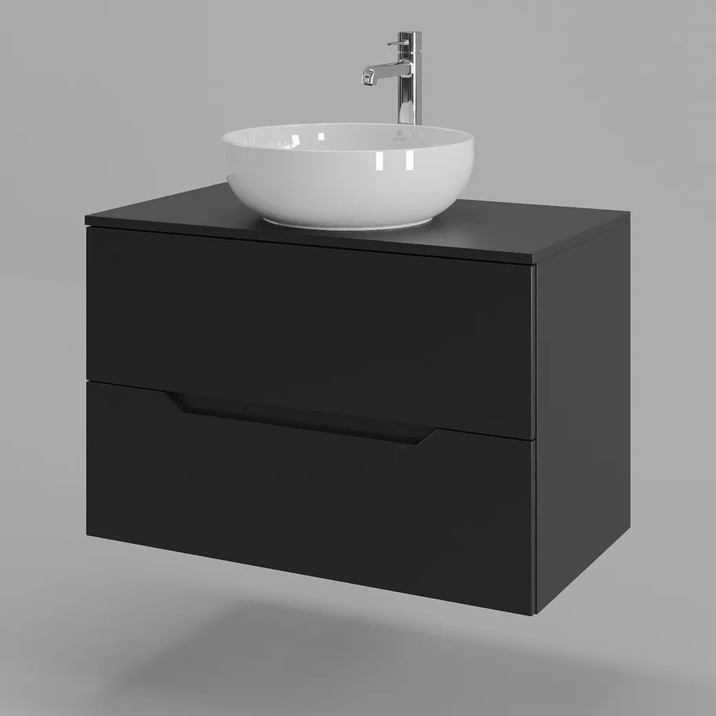 Тумба подвесная с накладной раковиной Orange Line отличается современным дизайном. Изготовлена из МДФ высокой плотности. Мебель покрыта пленкой ПВХ с технологией Soft Touch — ламинация класса премиум, с повышенными тактильными свойствами. Пленка обеспечивает дополнительную защиту мебели от влаги и перепадов температуры. На ящики установлены комплекты скрытых направляющих Hettich, обеспечивающие полное выдвижение и имеющие встроенную систему плавного и бесшумного закрывания. Исполнение - матовое. Материал раковины - фарфор. Отверстия в столешнице под раковину и смеситель монтируются самостоятельно.