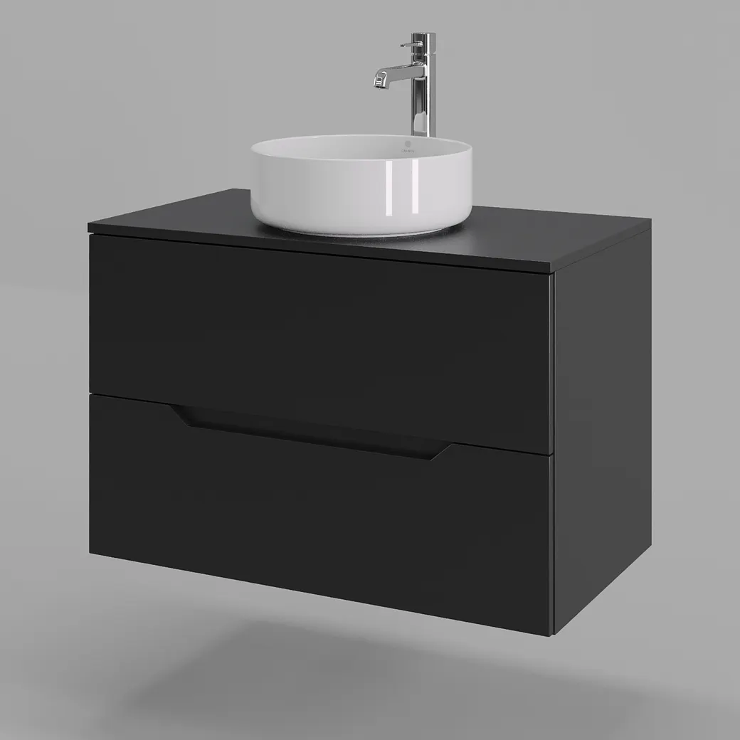 Тумба подвесная с накладной раковиной Orange Line отличается современным дизайном. Изготовлена из МДФ высокой плотности. Мебель покрыта пленкой ПВХ с технологией Soft Touch — ламинация класса премиум, с повышенными тактильными свойствами. Пленка обеспечивает дополнительную защиту мебели от влаги и перепадов температуры. На ящики установлены комплекты скрытых направляющих Hettich, обеспечивающие полное выдвижение и имеющие встроенную систему плавного и бесшумного закрывания. Исполнение - матовое. Материал раковины - фарфор. Отверстия в столешнице под раковину и смеситель монтируются самостоятельно.