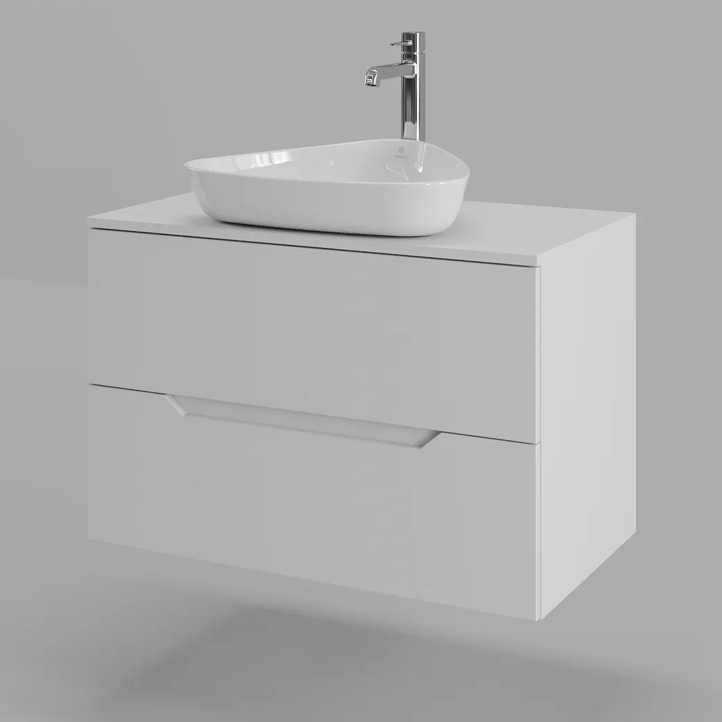 Тумба подвесная с накладной раковиной Orange Line отличается современным дизайном. Изготовлена из МДФ высокой плотности. Мебель покрыта пленкой ПВХ с технологией Soft Touch — ламинация класса премиум, с повышенными тактильными свойствами. Пленка обеспечивает дополнительную защиту мебели от влаги и перепадов температуры. На ящики установлены комплекты скрытых направляющих Hettich, обеспечивающие полное выдвижение и имеющие встроенную систему плавного и бесшумного закрывания. Исполнение - матовое. Материал раковины - фарфор. Отверстия в столешнице под раковину и смеситель монтируются самостоятельно.