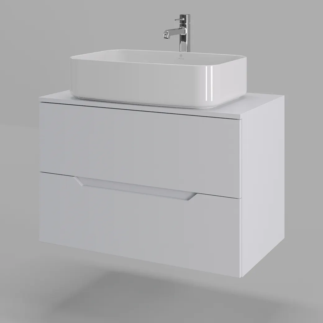 Тумба подвесная с накладной раковиной Orange Line отличается современным дизайном. Изготовлена из МДФ высокой плотности. Мебель покрыта пленкой ПВХ с технологией Soft Touch — ламинация класса премиум, с повышенными тактильными свойствами. Пленка обеспечивает дополнительную защиту мебели от влаги и перепадов температуры. На ящики установлены комплекты скрытых направляющих Hettich, обеспечивающие полное выдвижение и имеющие встроенную систему плавного и бесшумного закрывания. Исполнение - матовое. Материал раковины - фарфор. Отверстия в столешнице под раковину и смеситель монтируются самостоятельно.