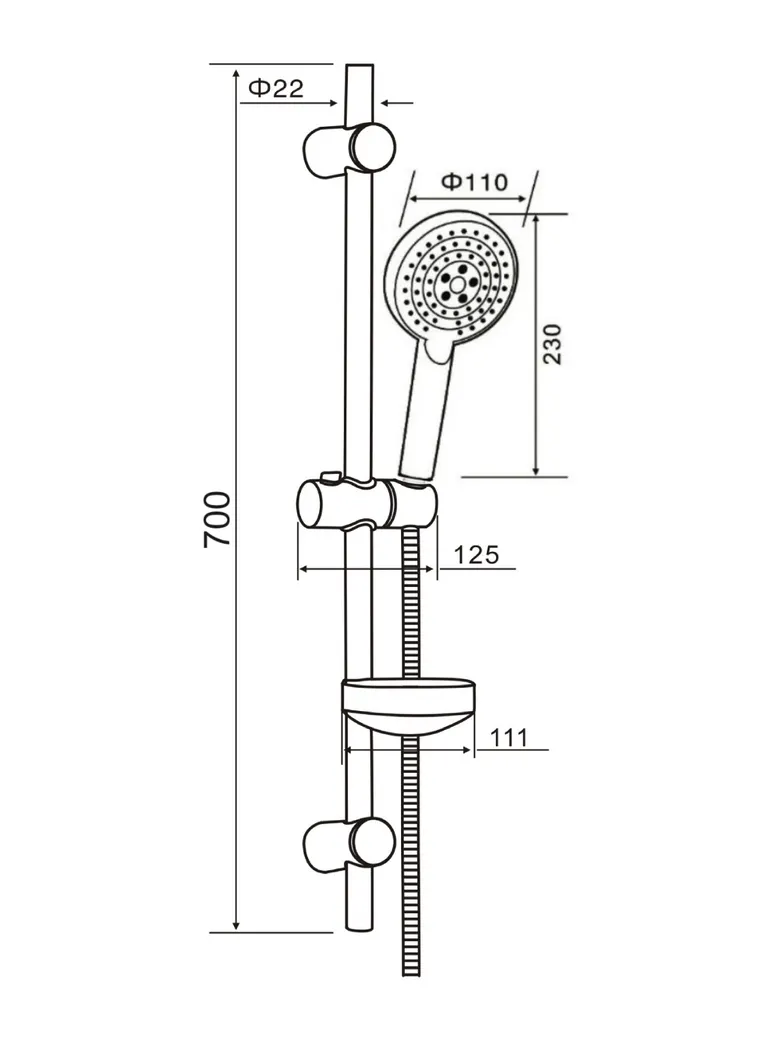 Orange O-Shower OS702b Душевой гарнитур, штанга 700 мм, лейка 3 режима, шланг 1,5 м, черный