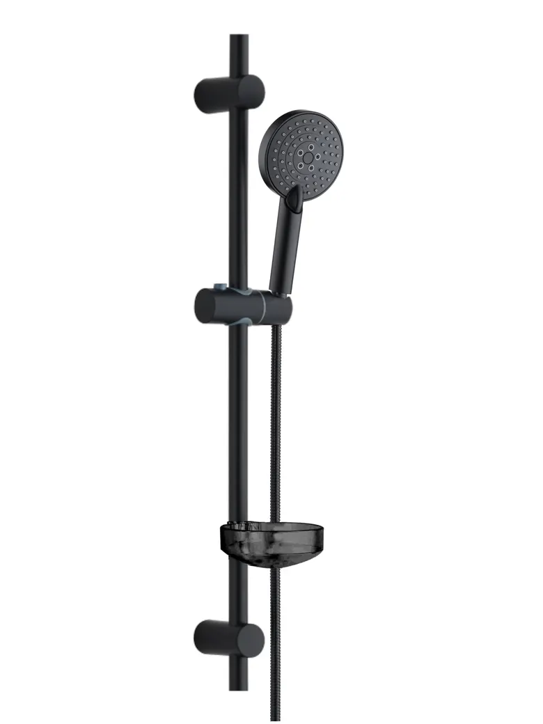 Душевой гарнитур Orange в цвете матовый черный украсит интерьер ванной комнаты в современном стиле. Подвижные детали отличаются долговечностью. Гарнитур включает в себя: ручной душ (d 110 мм) - 3 режима струи, форсунки с функцией легкого очищения от известкового налета, система AIR IN обеспечивает увеличенный напор и вместе с тем сокращает расход воды, материал ABS-пластик; душевой шланг 1500-1800 мм в металлической оплетке, с защитой от перекручивания; держатель ручного душа на штанге с регулировкой угла наклона и по высоте; штанга 700 мм с подвижными держателями (возможность установки в старые отверстия), материал штанги нержавеющая сталь; быстросъемная мыльница - материал ABS-пластик.