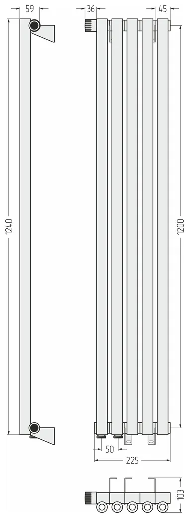 Отопительный радиатор Сунержа Эстет-0 EU50 левый 1200х225 5 секций RAL 7000 Серая белка арт-7000-0320-1205