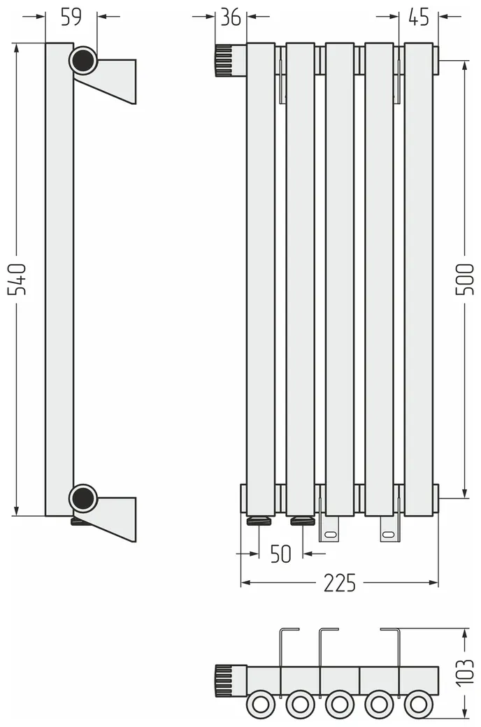Отопительный радиатор Сунержа Эстет-0 EU50 левый 500х225 5 секций RAL 7042 Транспортный серый A арт-7042-0320-5005