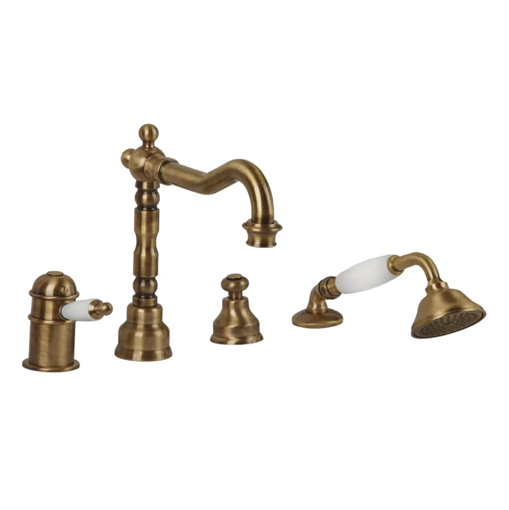 OXFORD См-ль на борт ванны моноком., термостат., на 4 отв., ручка белая, шланг1,6 м., бронза арт-19087