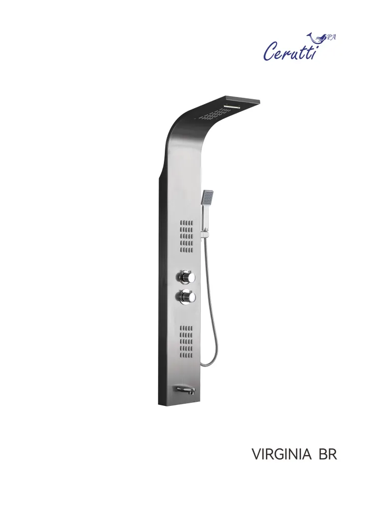 Комфорт ванной комнаты формируется современными элементами обустройства помещения. Поэтому для создания уютной атмосферы необходимо внимательно отнестись к выбору сантехнического оборудования. Сделать вашу ванную комнату не только эргономичной, но и функциональной, поможет душевая панель. Душевые панели становятся все более популярными, так как предлагают роскошные SPA процедуры в комфорте вашей собственной ванной комнаты. Эти изящные и стильные устройства обладают целым рядом функций, которые призваны улучшить ваши впечатления от принятия душа. Также душевые панели являются отличным решением для помещений любых размеров: они компактные, функциональные, удобные в управлении и эксплуатации. Душевые панели не требуют трудоёмкого ухода и являются отличной альтернативой классическим смесителям с ручной лейкой, душевым стойкам или кабины с гидромассажем. Трендовые душевые панели бренда Ceruttispa отличаются высоким качеством, современным дизайном, многофункциональностью, надежностью и долговечностью. Они будут прекрасно смотреться в любом интерьере, а качественный материал исполнения - нержавеющая сталь - прослужит долго, сохранив свои эстетические характеристики. Удобная и многофункциональная душевая панель VICTORIA BR предназначена для установки внутри душевых уголков, ограждений, а также совместно с ванной. Конструкция панели включает в себя верхний и ручной душ, а также держатель для аксессуаров. Излив оснащен аэратором, который снижает расход воды легко очищается. Внимание! Производитель оставляет за собой право вносить изменения в конструкцию и комплектацию моделей без предварительного уведомления! Особенности: Каркас панели выполнен из нержавеющей стали, что исключает образование коррозии. Гидромассаж (5 форсунок) Излив Система водопад Душевой шланг: гибкий 1,5м (PVC с защитой от излома и перекручивания) Комплектация: душевая панель, душевая лейка, смеситель, шланг для душа, верхний душ, крепеж, инструкция Внимание! Производитель оставляет за собой право вносить изменения в конструкцию и комплектацию моделей без предварительного уведомления!