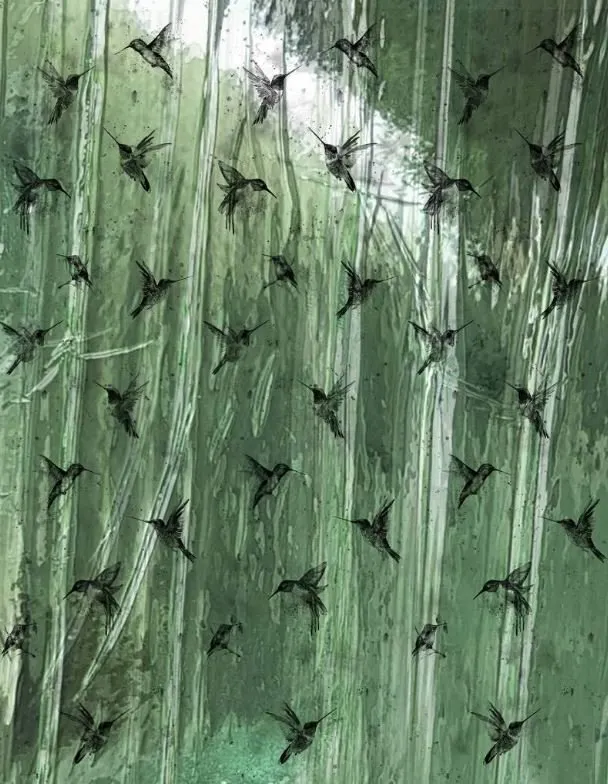 Панно Marburg Crush Motion 63463 Винил на флизелине (2,1*2,7) Зеленый, Птицы