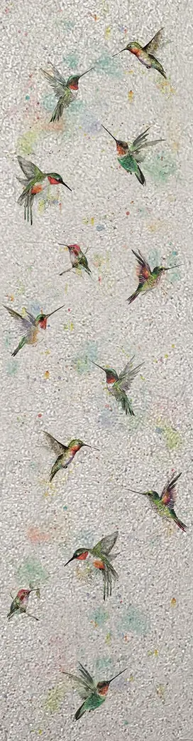 Панно Marburg Crush Motion 63497 Винил на флизелине (0,7*2,7) Серый/Разноцветный, Птицы