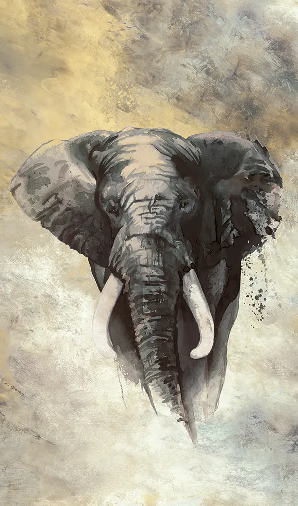 Панно Marburg Okan 33098 Винил на флизелине (1,59*2,7) Белый/Серый/Коричневый/Желтый, Животные/Штукатурка