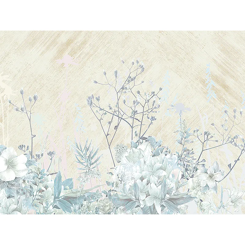 - Винил на флизелине (3*5,1) Бежевый/Голубой/Синий, Цветы/Листья