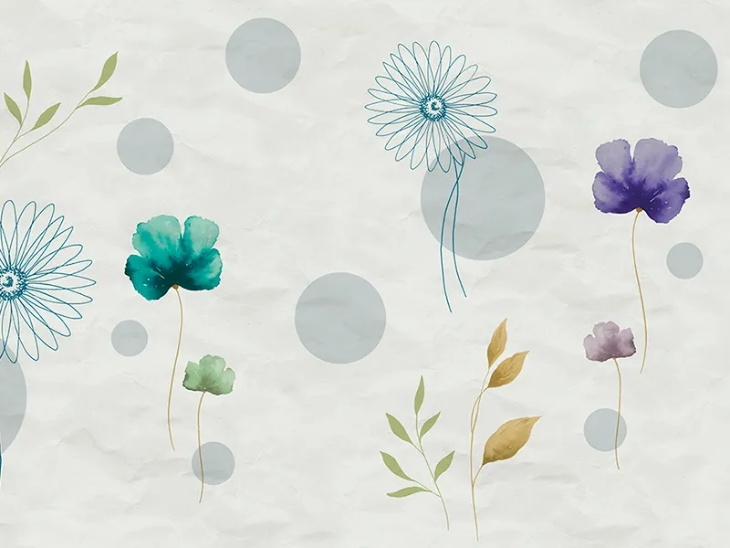 - Рисунок: Цветы, круги, листья