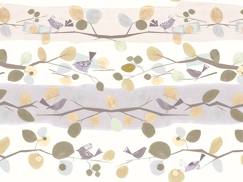 Панно Zambaiti Parati Satin Flowers IV Z66891 Винил на флизелине (3*5,1) Желтый/Сиреневый/Коричневый, Листья/Птицы