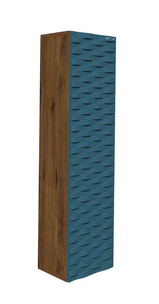 Подвесной пенал Альба- 30 см Матовая фактура в цвете Бриз с 3D рисунком безупречно сочетается с фактурой под дерево и позволяет тумбе органично вписаться в интерьер ванной комнаты.