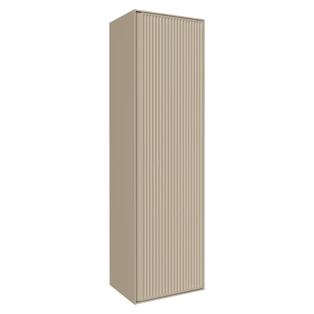 Подвесной пенал “КРИСТАЛЛ” 35 см, универсальный, бежевый матовый — компактный и стильный элемент мебели для ванной комнаты. Корпус и фасады выполнены из МДФ, окрашенного в бежевый цвет с матовым финишем. Фасад с вертикальным рифлением придаёт изысканный внешний вид, а безручечный дизайн и петли с доводчиком обеспечивают плавное и бесшумное закрытие. Внутри — 4 вместительные полки из ЛДСП для удобного хранения. Пенал универсален по установке, в комплект входят надёжные подвесы для крепления к стене.