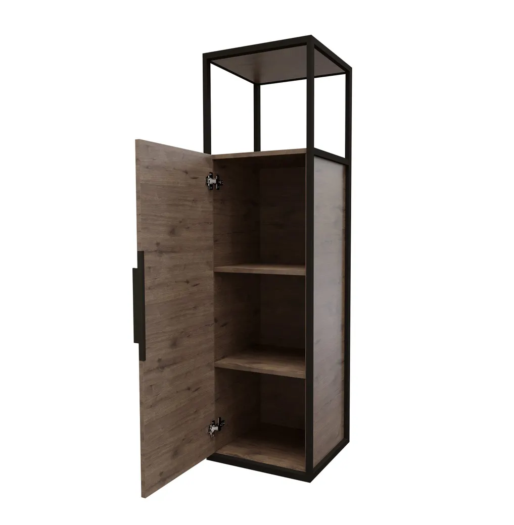 Подвесной пенал Лофт-90 образует дополнительное пространство для хранения средств гигиены и аксессуаров, обеспечивая максимальную эргономичность ванной комнаты. Внутреннее пространство пенала поделено полками на 3 секции. Интегрированный профиль из анодированного металла придадст интерьеру брутальности, присущий стилю лофт.Дверь снабжена мезанихмом плавного закрывания. Корпус и фасады пенала выполнены из влагостойкого ЛДСП, устойчивого к перепадам температур и высокой влажности, крепится к стене. Ручка и подвесы для крепления тумбы - в комплекте.