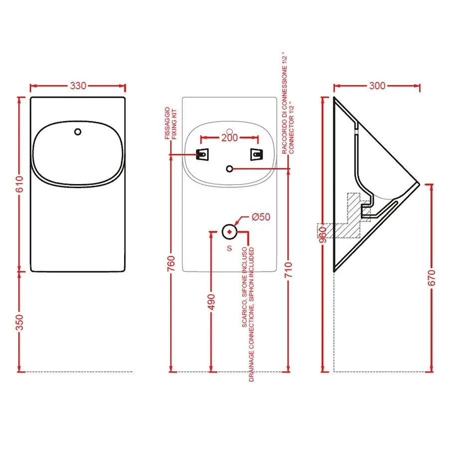 Писсуар Artceram La Fontana подвесной с сифоном и креплением saniglaze цвет белый LFO002 01 34 — фото 2, Писсуары