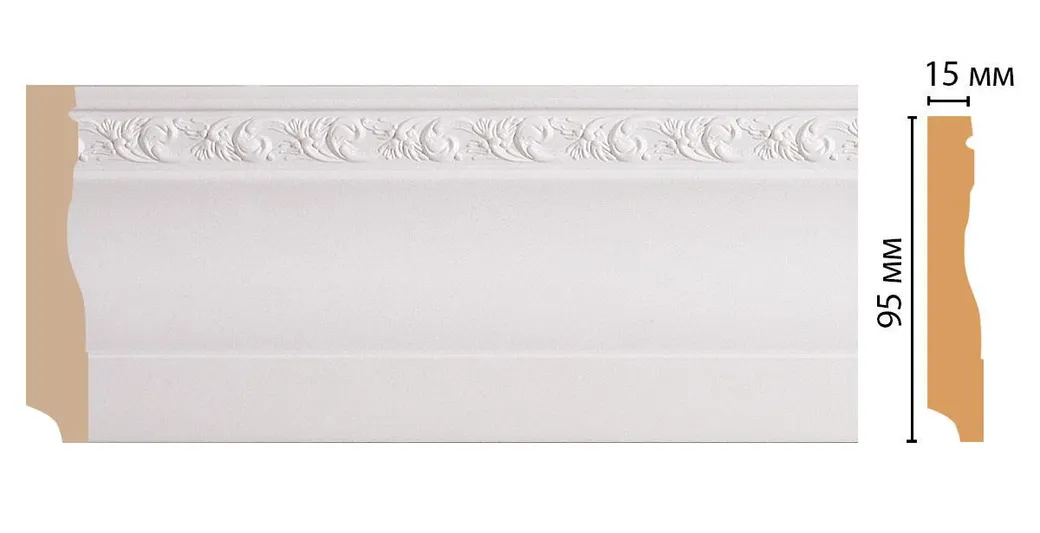 - Универсальность: Размеры плинтуса (2400x95x15 мм) позволяют использовать его в различных помещениях, обеспечивая идеальное прилегание к стенам.