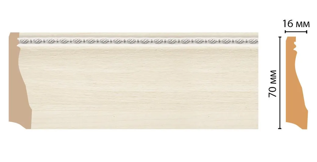 Плинтус Decomaster 193-15 2400x70x16 мм — идеальное решение для отделки вашего интерьера. Этот напольный плинтус сочетает в себе стиль и функциональность, обеспечивая надежную защиту стыков стен и пола. Бежевый/Серебро цвет плинтуса легко вписывается в любой интерьер, добавляя изысканности и завершенности.