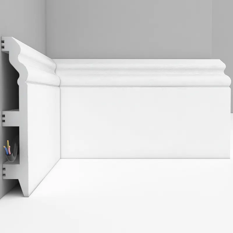 - Универсальный белый цвет: напольные плинтусы белого цвета легко вписываются в любой стиль интерьера, создавая элегантный и чистый вид.