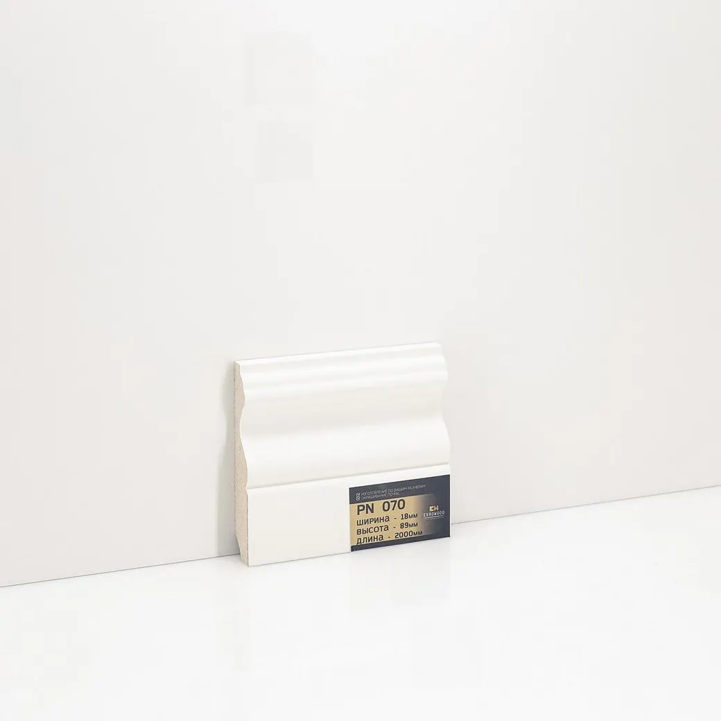Плинтус Evrowood PN 070 — идеальное решение для оформления интерьера. Этот плинтус напольный белого цвета станет стильным дополнением к вашему полу, придавая комнате завершенный вид. Изготовленный в России, он отличается высоким качеством и долговечностью. Плинтус высотой 89 мм легко монтируется и обеспечивает надежную защиту стен от повреждений и загрязнений.