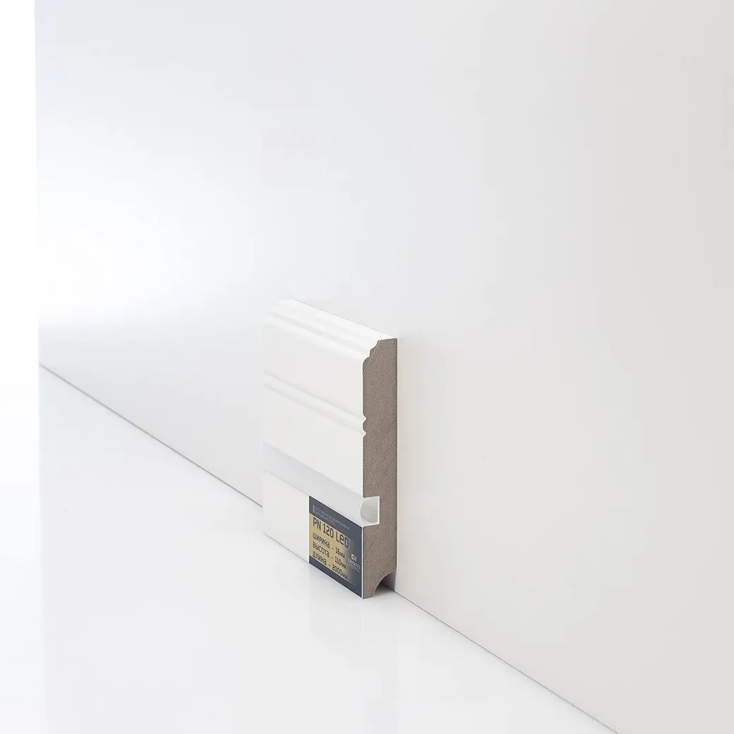 Плинтус Evrowood PN 120 led 2000x110x16 мм — идеальное решение для создания стильного и современного интерьера. Этот напольный плинтус отличается высоким качеством и долговечностью, что делает его великолепным выбором для вашего дома. Комбинация белого цвета и встроенной LED-подсветки добавляет элегантности и изысканности в любое помещение.