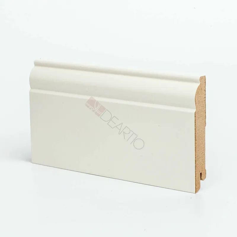 Плинтус Deartio Премиум U 104-100 RAL 9010 Кремовый МДФ 2050х100х16 мм поверхность матовая. Изготовлен из экологичной и ультрапрочной МДФ, не содержащей эпоксидных смол и фенола. Усилен покрытием из термопластичного полимера, используемого в пищевом производстве, что также гарантирует его абсолютную экологичность и безопасность. Покрыт антистатичным лаком, защищающим от пыли и загрязнений. Полностью готов к установке, не требует окрашивания. Устойчив к влаге, выгоранию, износу и повреждениям. Укомплектован специальным пазом для универсальной фиксации, легкого монтажа и демонтажа. Имеет встроенный кабель канал, позволяющий легко спрятать любые провода и придать помещению эстетично-аккуратный облик. Высокая плотность МДФ обеспечивает легкий монтаж элемента, распил без сколов и задиров. Это снижает расход плинтуса и существенно экономит деньги. Размер плинтуса: 2050х100х16 мм. В упаковке 10 штук. Вес упаковки составляет 1,9 кг. Дизайн: кремовый. Материал: МДФ высокой плотности. Поверхность: матовая. Поверхность на ощупь: гладкая. Профиль: прямой. Монтаж: на клей, жидкие гвозди или клипсы Deartio. Влагостойкость: влагостойкий. Встроенный кабель канал. Базовое покрытие: инертный полимер для защиты от влаги и деформаций. Антистатичное покрытие из лака для защиты от пыли.