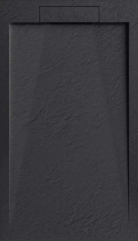 Поддон для душа квадратной формы. Материал: искусственный камень. Крышка слива из камня в цвет подддона. Структура поверхности: "сланец матовый". Верхний слой поверхности: износостойкий Gel Coat. Цвет: черный матовый