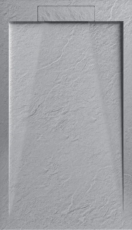 материал: искуственный камень, структура поверхности- "матовый сланец", износостойкий верхний слой Gel Coat, крышка слива искуственный камень в цвет поддона, цвет: серый