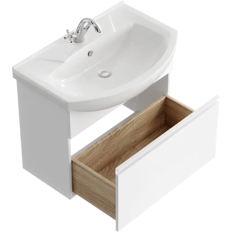 Подвесная тумба 76 см с одним ящиком в белом цвете, с умывальником арт-ROD01071