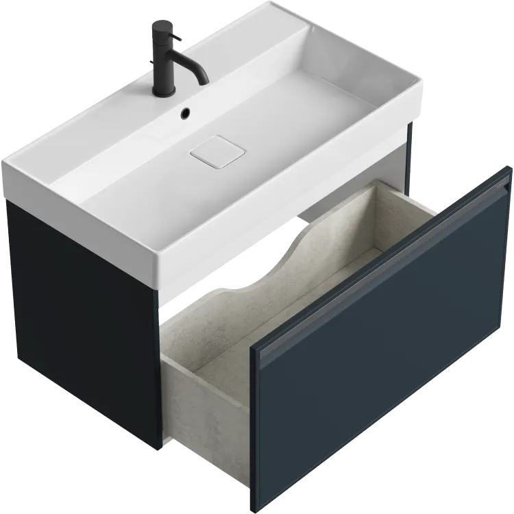 Подвесная тумба 81 см с одним ящиком в сером цвете, с умывальником арт-PUR0108GRM