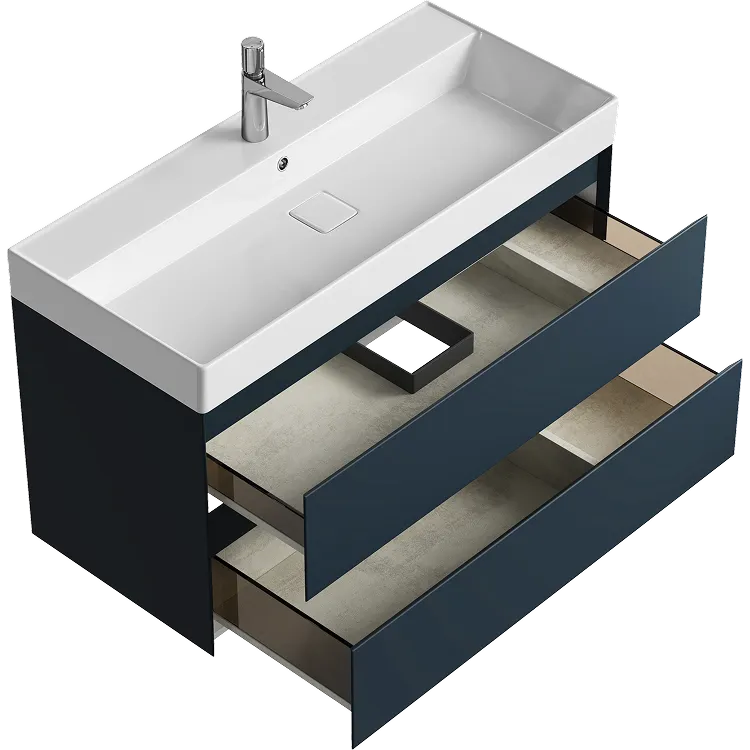 Подвесная тумба с двумя ящиками 100 см, цвет серый с умывальником арт-GE01102GRM