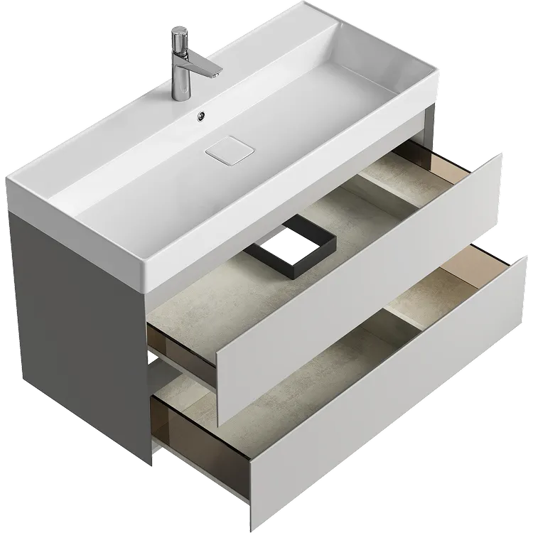 Подвесная тумба с двумя ящиками 100 см, цвет серый туман с умывальником арт-GE01102ST