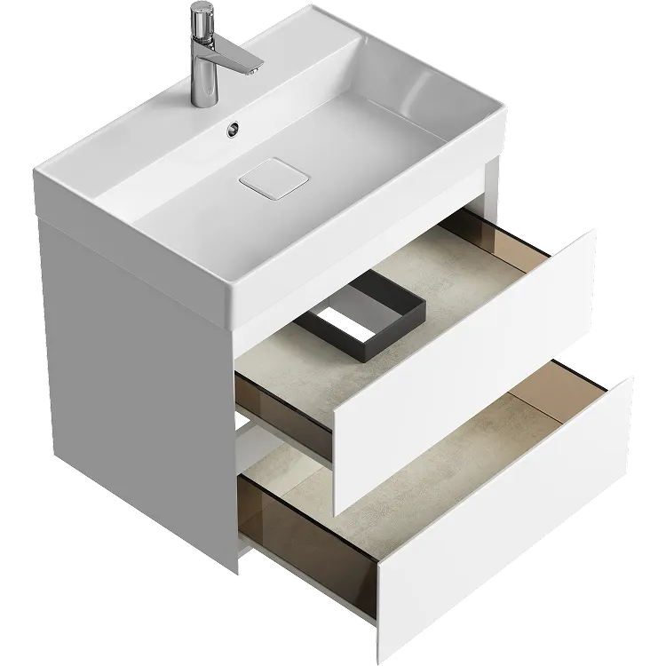 Подвесная тумба с двумя ящиками 65 см, цвет белый с умывальником арт-GE01652WM