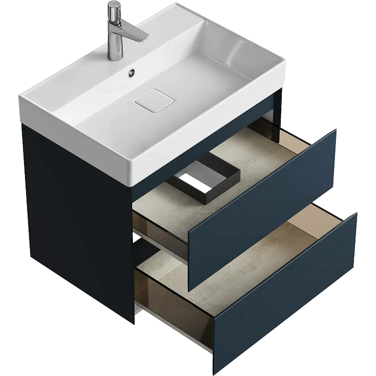 Подвесная тумба с двумя ящиками 65 см, цвет серый с умывальником арт-GE01652GRM