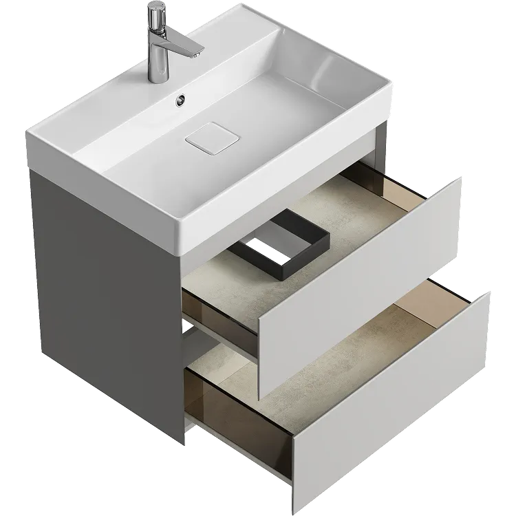 Подвесная тумба с двумя ящиками 65 см, цвет серый туман с умывальником арт-GE01652ST
