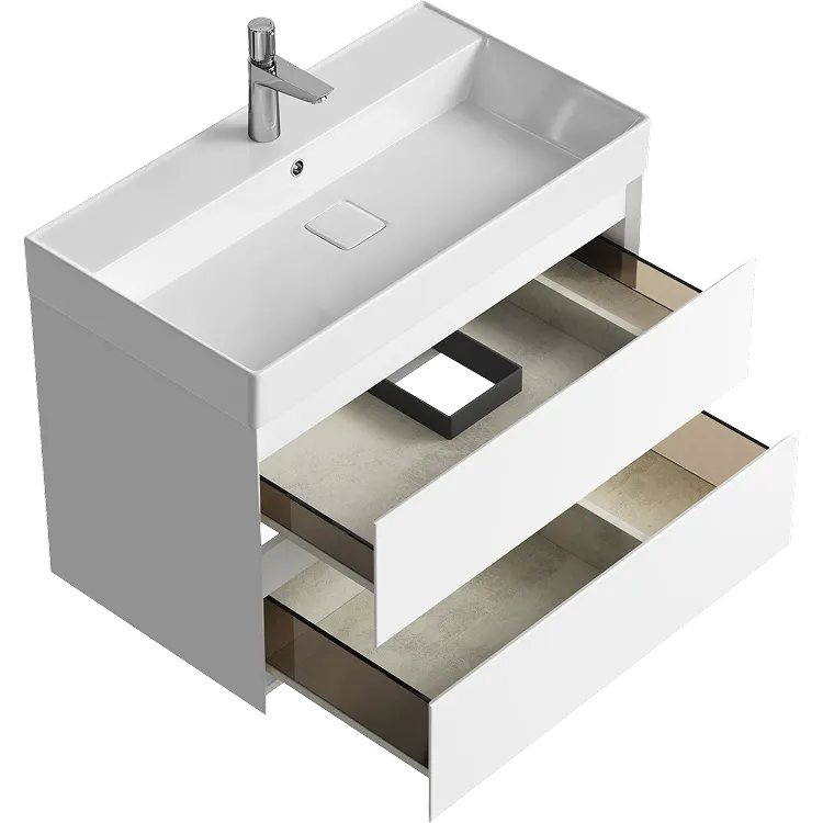 Подвесная тумба с двумя ящиками 81 см, цвет белый с умывальником арт-GE01082WM