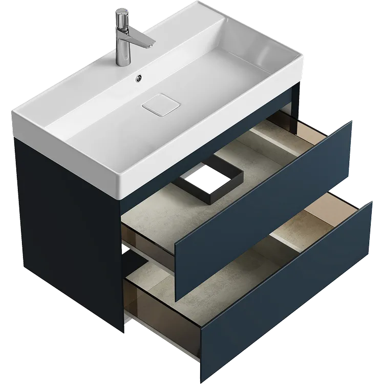 Подвесная тумба с двумя ящиками 81 см, цвет серый с умывальником арт-GE01082GRM