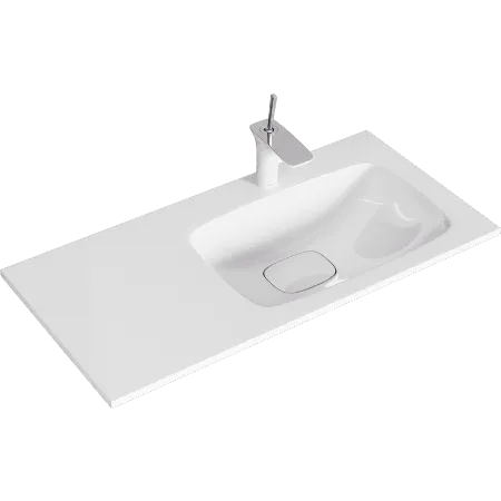 Подвесная тумба с двумя ящиками и одной дверью в белом цвете с умывальником из литьевого мрамора (чаша справа) арт-ACC0109RW