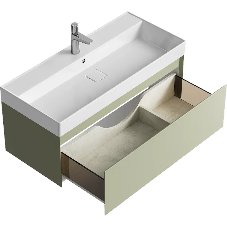 Подвесная тумба с одним ящиком 100 см, цвет зеленый шалфей с умывальником арт-GE01101SH