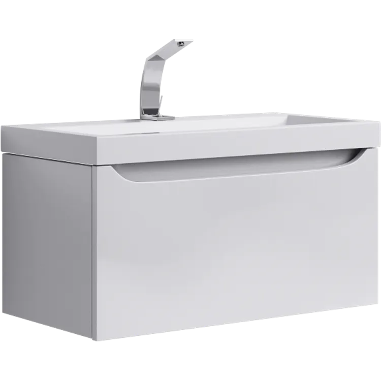 Подвесная тумба в цвете белый глянец с одним выдвижным ящиком и полкой, скрытой за фасадом, с умывальником из литьевого мрамора арт-Ver.01.08/W
